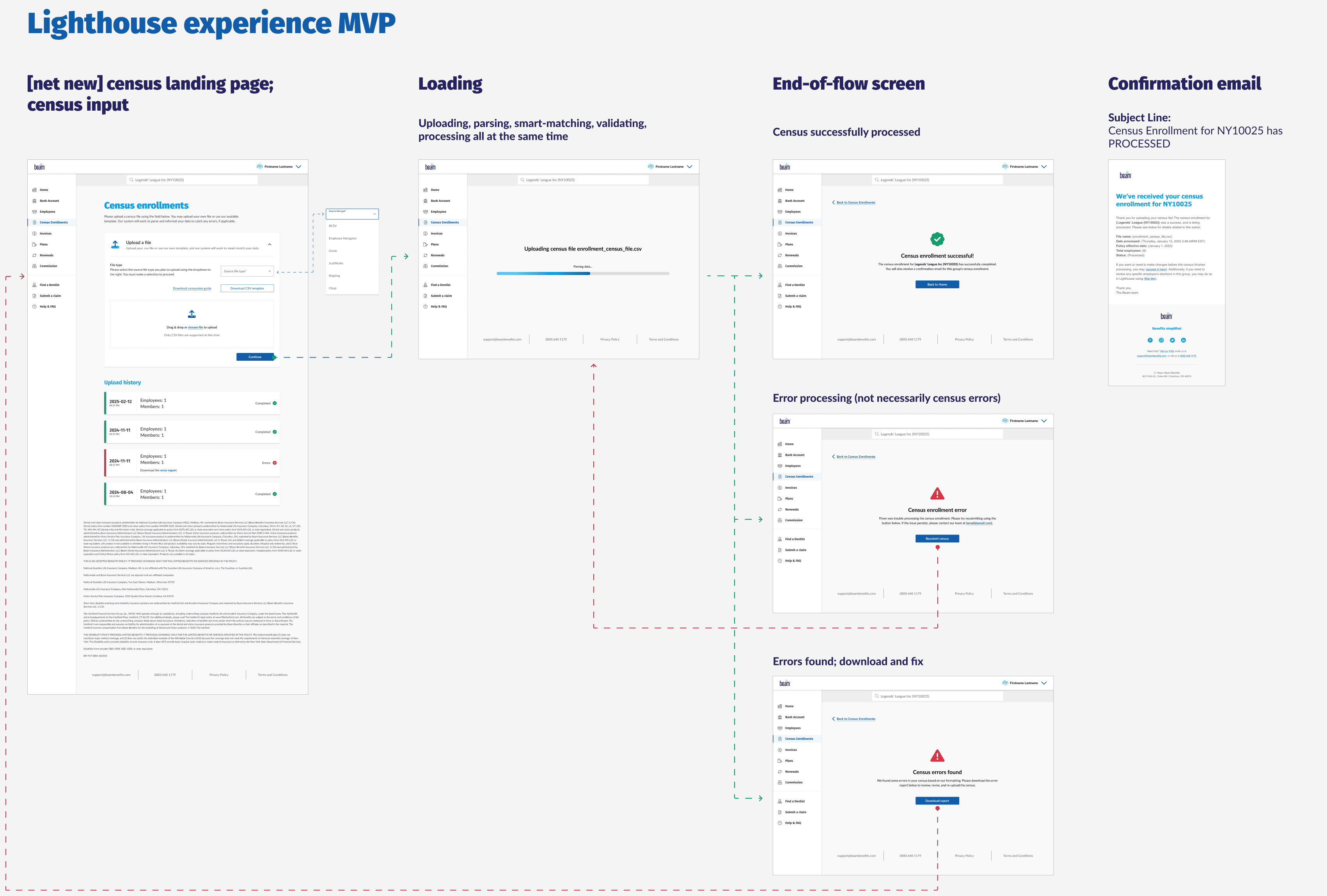 Beam's current internal census upload experience was in great need of an overhaul, and the UX Research team was already speaking with insurance broker and HR admins about their experiences. The overall process felt disjointed, prone to errors along the way.