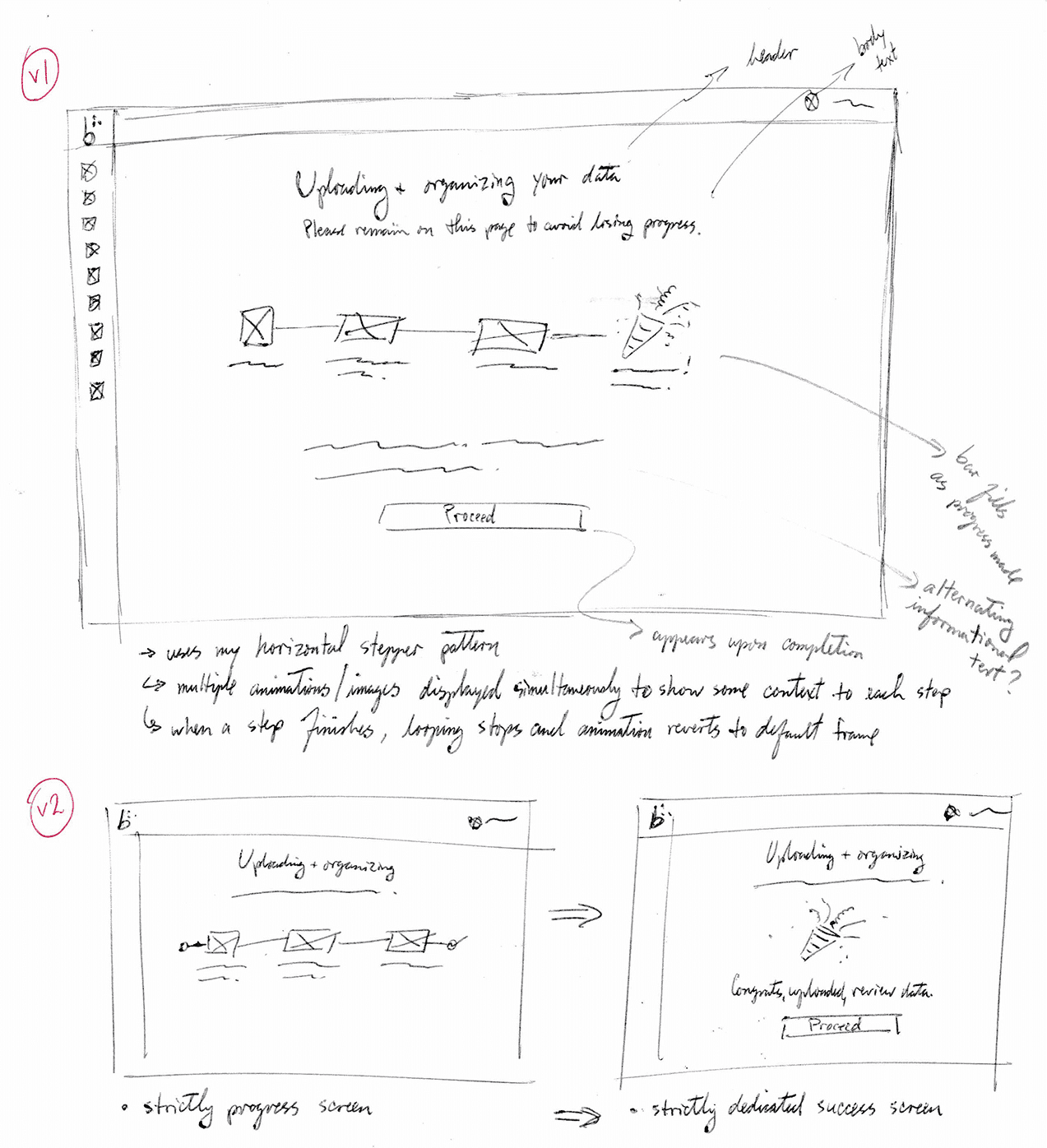 Our resident graphic designer, lead product designer, and I decided it would be fun to explore ideas for visual delight within the loading screens of the census enrollment experience. Although nothing came of it in the end due to the previously mentioned shifting business needs, there was a good foundation being built for similar experience moving forward. Here are the concepts we wanted to further explore.
